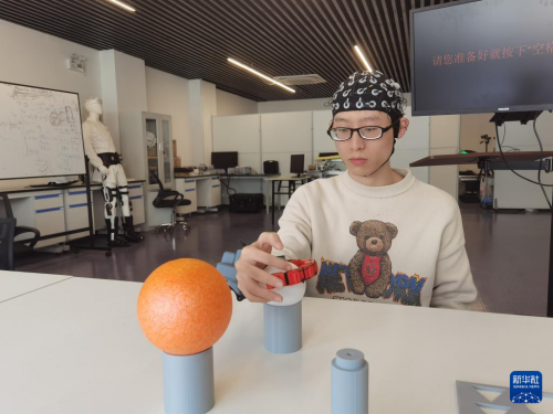 “现在想象,右手腕长出了一根‘第六指’,用它去抓握。”脑机海河实验室团队成员王壮,正在和同事进行“读心术”测试。佩戴机械“第六指”,测试人员右手不断接近桌面,只见机械手指缓缓张开,并稳稳抓住桌子上的小球。