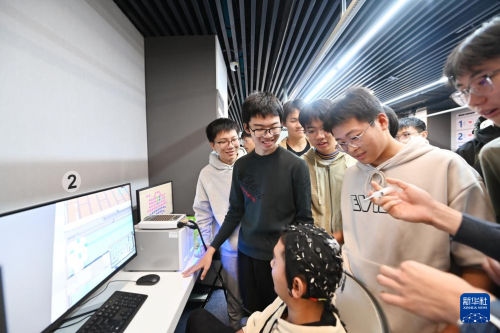 学生在天津大学脑控系统研发与集成应用实验室内上课。新华社记者 李然 摄