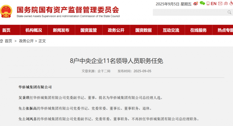 靴子终于落地。前天(9月5日),国务院国资委正式发布涉及华侨城集团有限公司主要领导职务任免的公告。