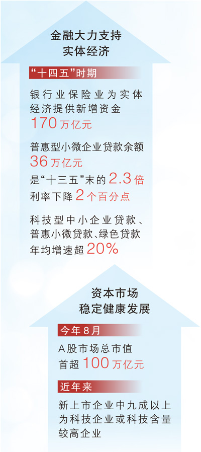 “十四五”时期,我国科技型中小企业贷款、普惠小微贷款、绿色贷款年均增速超20%。截至今年6月末,银行业总资产近470万亿元,位居世界第一;股票、债券市场规模位居世界第二;外汇储备规模连续20年位居世界第一。多渠道、广覆盖、安全高效的人民币跨境支付清算网络基本建成,移动支付处于国际领先水平。