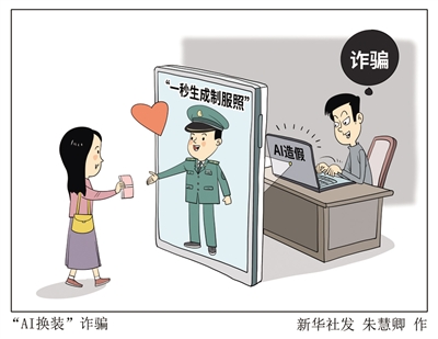 今年4月,江苏省江阴市人民法院对一起冒充军人招摇撞骗案作出判决。网民路某并非现役军人,却盗用网络上军人训练的照片发布在短视频平台上;收获不少点赞后,他又用AI将自己的头像合成到军装照上,并花钱伪造军官证,摇身变成“少校军官”。在骗取6名女性信任后,他以“车祸”“租车见领导”等借口诈骗3万多元。法院以冒充军人招摇撞骗罪判处其有期徒刑2年。