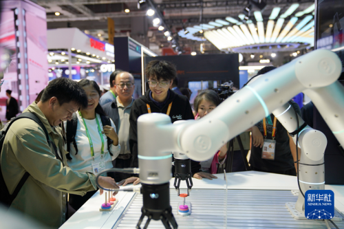 11月6日,参观者在国家会展中心(上海)技术装备展区西门子展台与AI进行游戏互动。 新华社记者 樊雨晴 摄