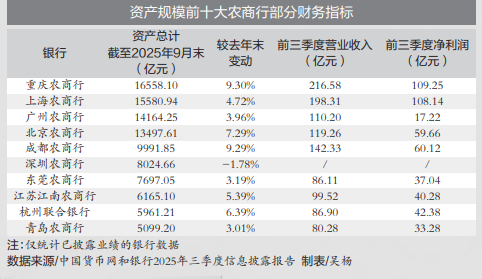 如今,新万亿农商行的竞逐格局已逐渐清晰。成都农商行是最具确定性的“候选人”——截至三季度末,其资产规模距万亿元仅差不足20亿元,较二季度末增长1.58%,年末有望突破万亿元;7.34%的营收同比增速与6.97%的净利润同比增速,实现“规模+盈利”双高。深圳农商行、东莞农商行、杭州联合银行等构成“潜力梯队”,资产规模均有望跨上万亿元台阶。
