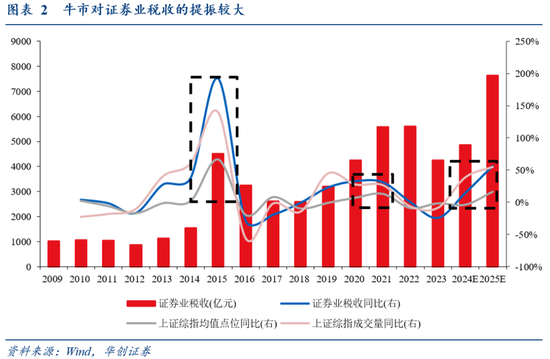 作为验证,上市券商2024年三季报至2025年三季报的利润同比增速和我们测算2025年税收所用同比增速的量级基本匹配(2024三季报-8%,2024年报15%,2025一季报73%,2025中报66%,2025三季报76%)。