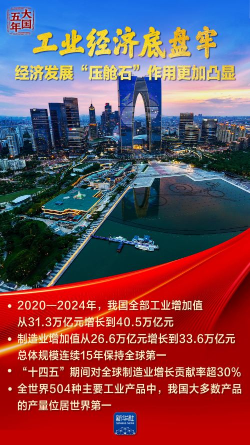 工业经济底盘稳固,制造业增加值突破33万亿元;大国重器闪亮登场,创新成果璀璨夺目;数字化转型全面提速,智能工厂遍地开花……过去五年,我国实体经济不断巩固壮大,为高质量发展与强国建设筑牢“压舱石”。