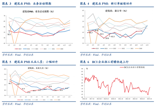 1)预期:11月,建筑业业务活动预期指数上行至57.9%,是2024年4月以来的最高位,好于2024年同期水平(彼时,有提前下达明年1000亿元中央预算内投资计划和1000亿元“两重”建设项目清单,建筑业业务活动预期四季度持续回升)。