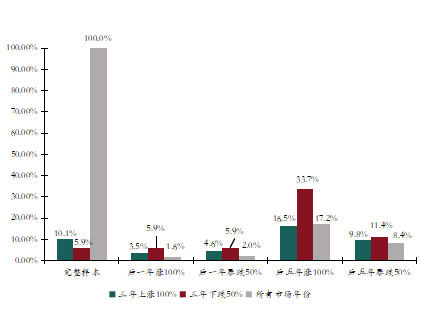 图3:股票市场指数在三个日历年内上涨100%或下跌50%的条件下,市场繁荣和萧条的发生概率