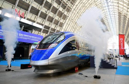 2025年9月18日,由中国中车自主研制且拥有完全自主知识产权的首列中国标准智能市域列车暨京雄快线列车在青岛亮相。新华社记者 李紫恒 摄