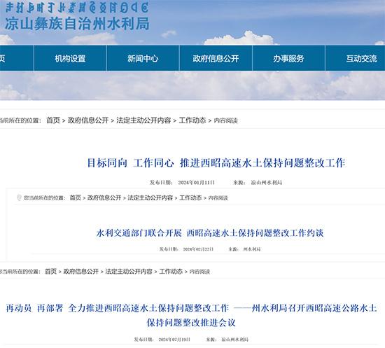 凉山州水利局网站消息,2024年7月17日,为迎接中央环保督察,凉山州水利局再次召开整改推进会。会议通报了西昭高速水土保持问题、省水利厅移交线索及相关要求。