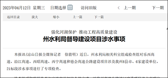 据凉山日报此前报道,早在2023年4月,凉山州水利局就对包括西昭高速在内的多条高速涉水事项进行专项检查,并向相关方反馈了问题。彼时,西昭高速项目的施工涉水问题还未严重到被凉山州监管口“单独点名”的地步。
