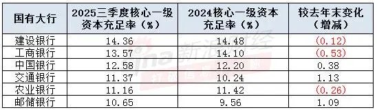 分机构类型看,2025年三季度末,城市商业银行、农村商业银行资本充足率分别为12.4%、13.2%,低于大型商业银行17.99%和股份制商业银行13.48%的资本充足水平。
