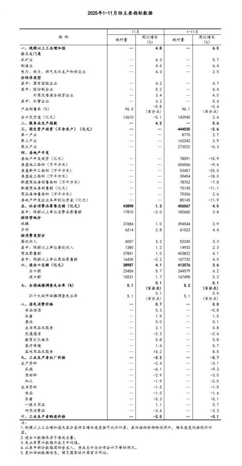 总的来看,11月份国民经济运行总体平稳,延续稳中有进发展态势。但外部不稳定不确定因素较多,国内有效需求不足,经济运行面临不少挑战。下阶段,要坚持以习近平新时代中国特色社会主义思想为指导,深入贯彻落实党的二十大和二十届历次全会、中央经济工作会议精神,坚持稳中求进工作总基调,实施更加积极有为的宏观政策,持续扩大内需、优化供给,做优增量、盘活存量,着力稳就业、稳企业、稳市场、稳预期,推动经济实现质的有效提升和量的合理增长。