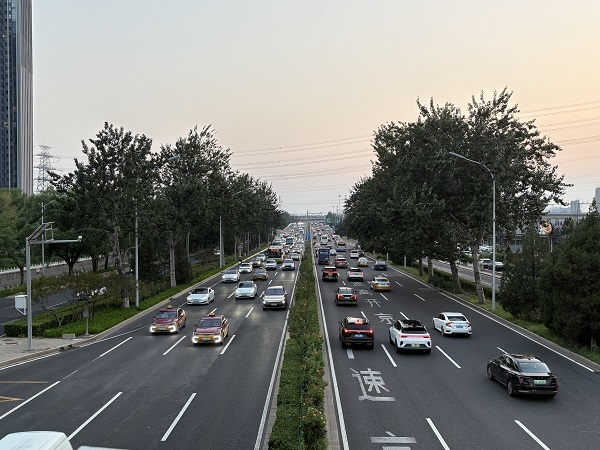 图为通关后的车辆通过零公里处驶往越南。中新网记者 蒋雪林 摄
