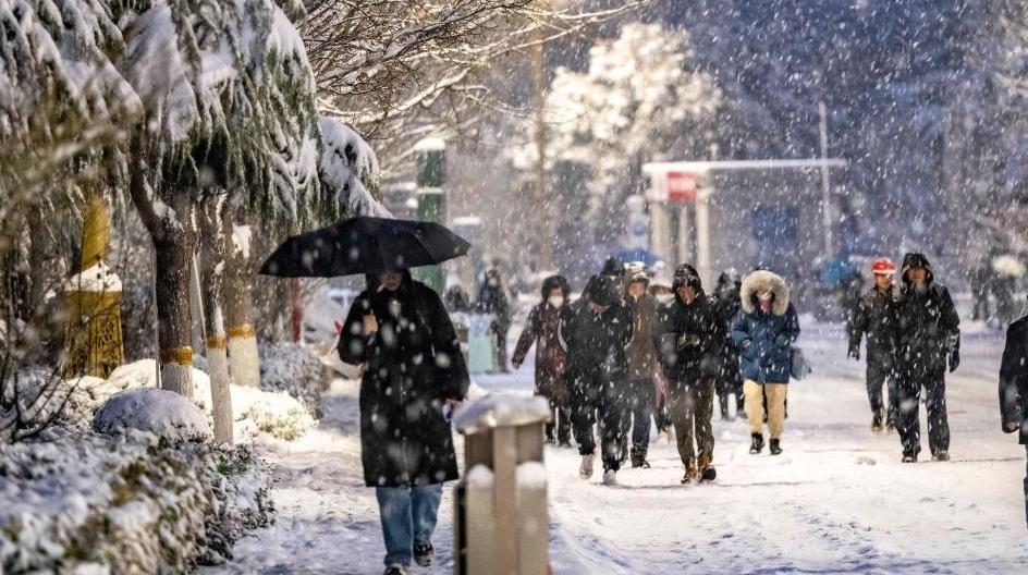1月21日,湖南长沙城区迎来期盼已久的短时小雪,城市覆上薄雪,众多市民走出家门嬉戏玩雪。图为市民在雪中嬉戏。中新社记者 杨华峰 摄