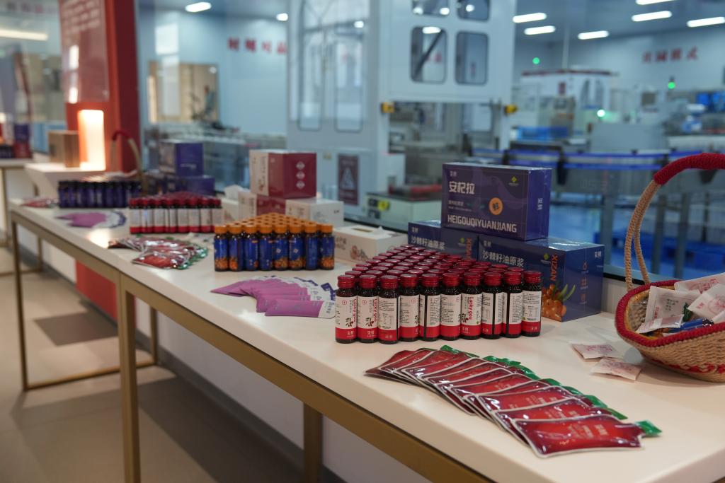 玺赞庄园枸杞新产品展示台。新华社记者马丽娟 摄