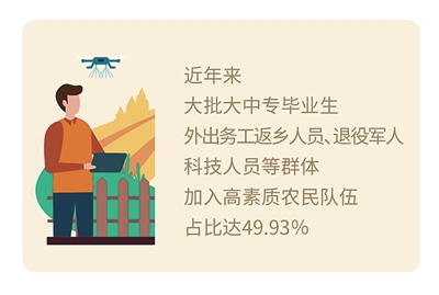 劳动者是最活跃的生产要素。从农作物耕种收综合机械化率达到76.7%,到农业科技进步贡献率超过64%,不断刷新的各项数据,既反映了农业生产“含科量”的提升,也是农业生产经营者结构“含新量”的体现。从这个意义上来说,“谁来种地”不仅关乎农村劳动力缺口的补齐,更决定了未来将“怎么种地”。
